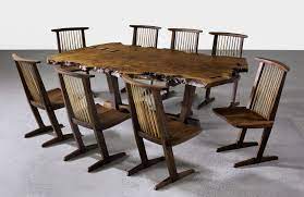 His global pursuits to save and maintain. Black walnut trestle dining table inspired by the george nakashima conoid table design redbarnwoodchairs 5 out of 5 stars (2) $ 7,500.00 free shipping add to favorites custom walnut live edge 3 drawer wall unit floating desk entry table mid century japanese nakashima style gideonwoodworker 5 out of 5 stars (52. Only 1 available and it's in 2 people's carts. Live edge mid century modern coffee table style of nakashima. Diy furniture stain fine furniture furniture design trestle table plans trestle dining tables wood joints scrap wood projects industrial furniture. It is about 5′ wide at the crotch and 3.5′ at the narrow end. Each nakashima piece is unique, made to order, and follows a design. By george nakashima, widdicomb furniture co. By george nakashima, widdicomb furniture co. 94 x 42 x 30. After his death, she continues his legacy by running nakashima studio in new hope, pennsylvania, and producing his classic furniture designs, including this conoid dining table. One of our earliest designs, this piece was inspired by the simple lifestyle of early american shakers. George nakashima dining table model 202 for widdicomb 1959 two leaves.
